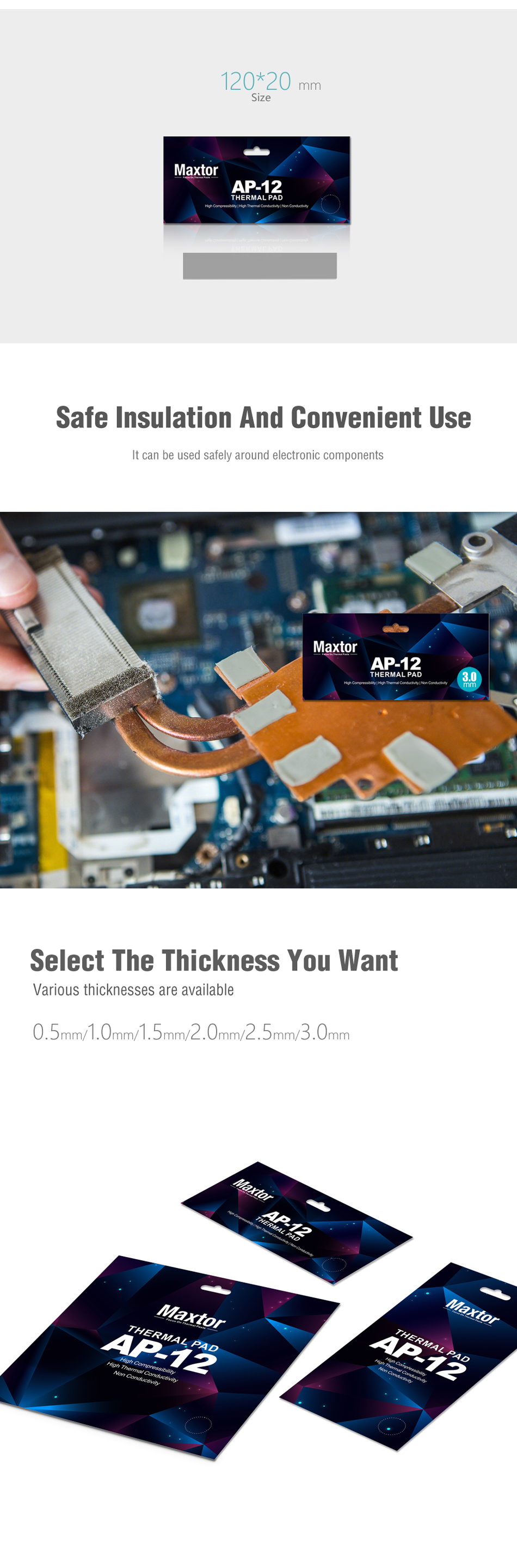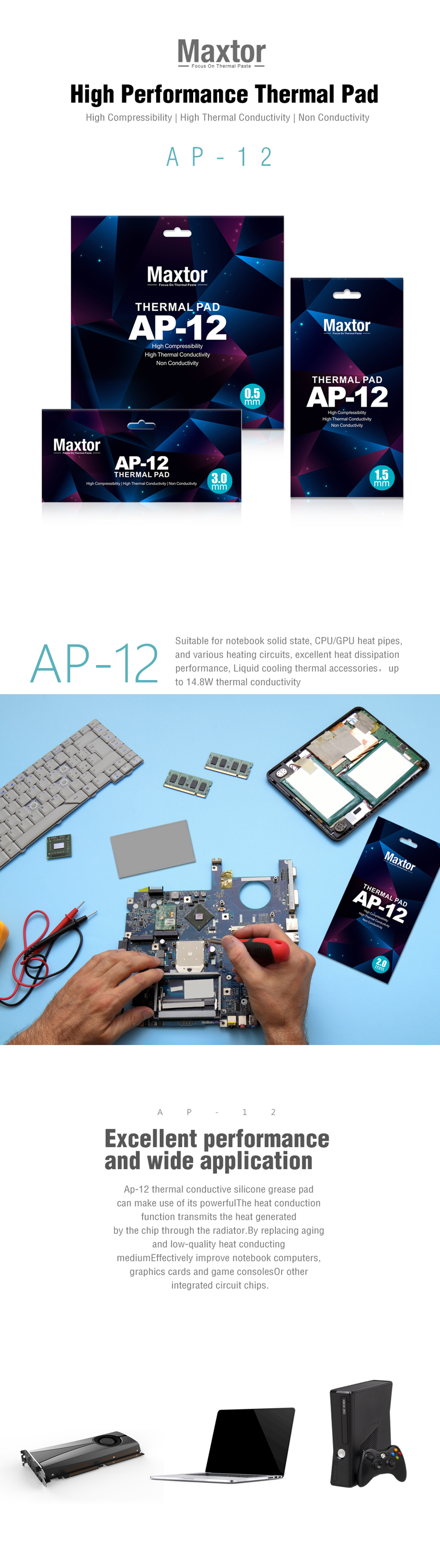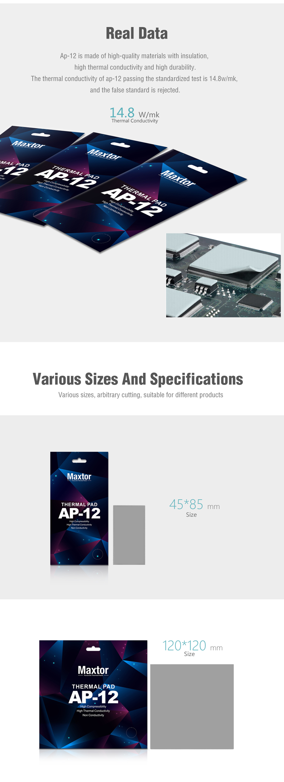 The main factors to consider are thermal conductivity, thickness, hardness, and insulation. Higher thermal conductivity means better heat transfer. The correct thickness should match the gap between components. The hardness and compressibility must ensure full surface contact without damaging parts. Electrical insulation is essential when working with sensitive circuits. For high-performance systems, pads with a conductivity of 10 W/m·K or above are recommended. For example, model AP-14 provides a thermal conductivity of 16.8 W/m·K, suitable for high-power applications.